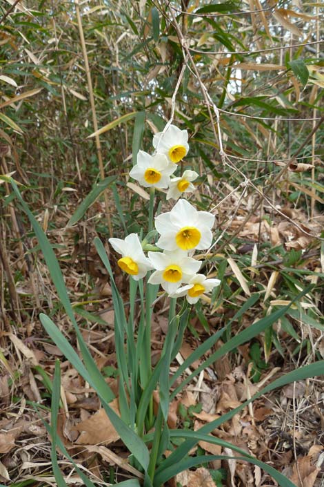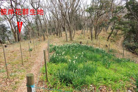 | 彼岸花群生地横で咲く水仙 | 都会のお山らしい洒落たベンチ | |||