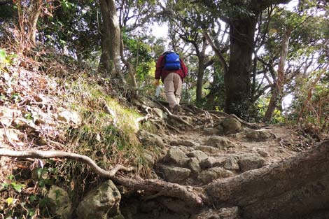 | 男坂(急登)を頑張っているFハイカー | 男坂終了 | |||