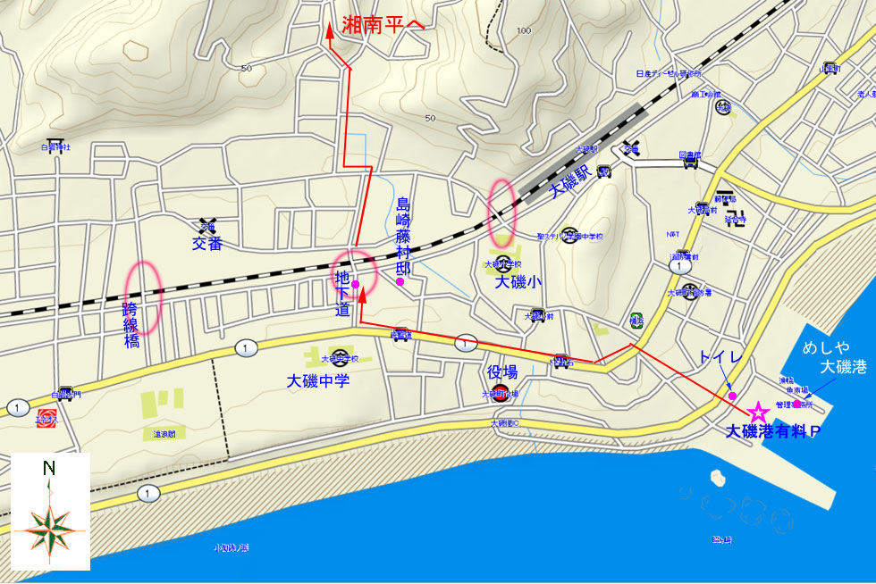 | 化粧坂〜大磯港駐車場拡大図 | ||||