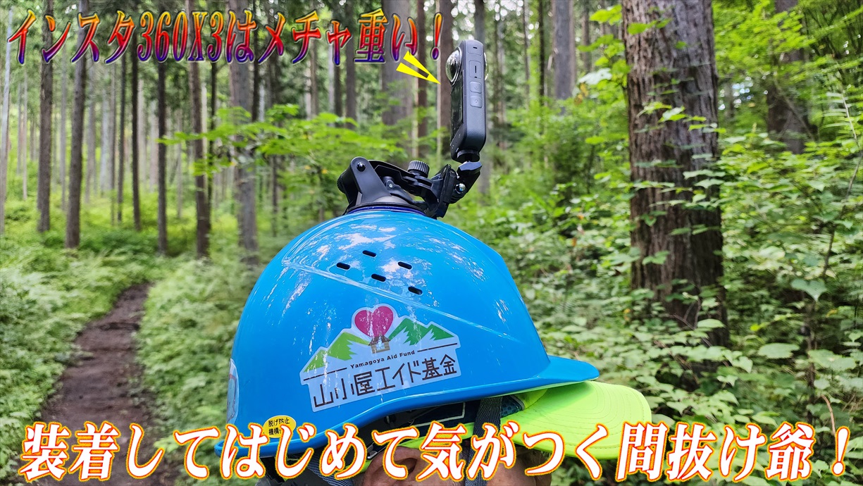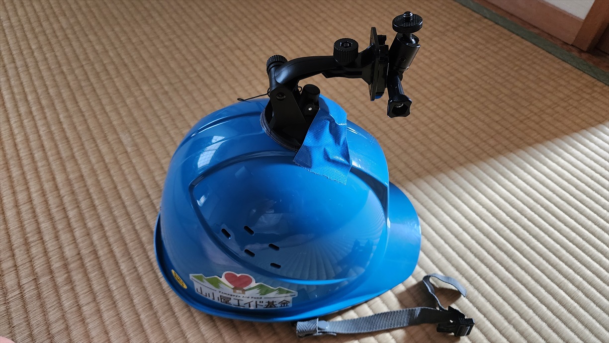| 本体重さを考慮しなかったため歩くたびにヘルメットが前方にズリ!ズリ! 装着器具を後ろ側に付け直して再チャレンジせねば・・・汗 |
