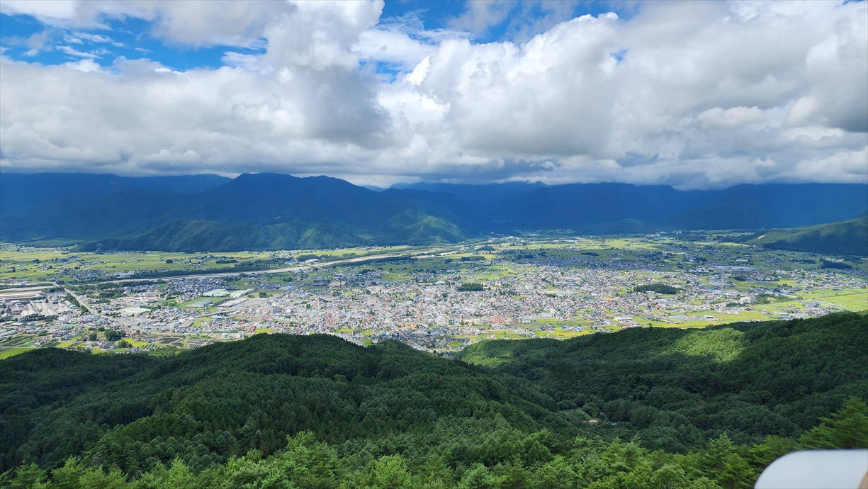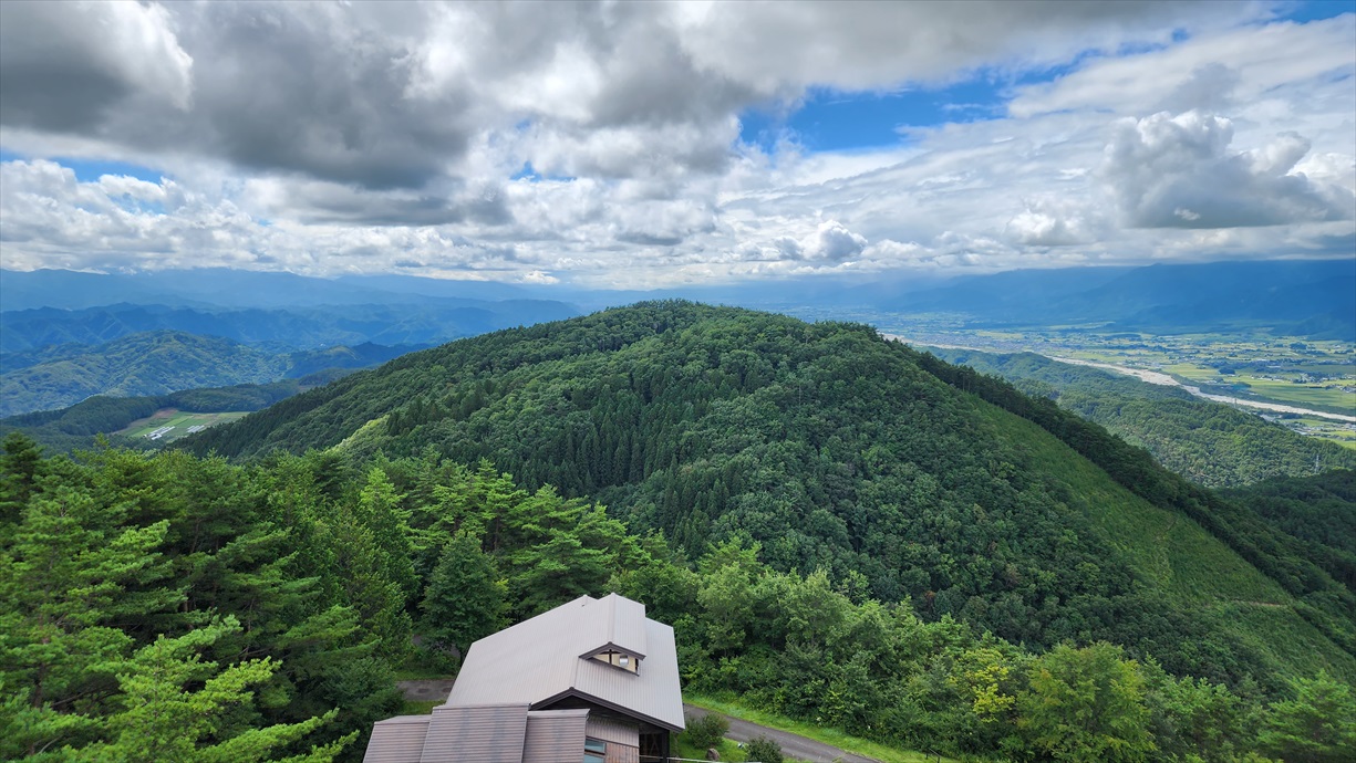 | 北アルプスは雲の中・鷹狩山展望台より 鷹狩山展望台屋上からのパノラマ図解あり |