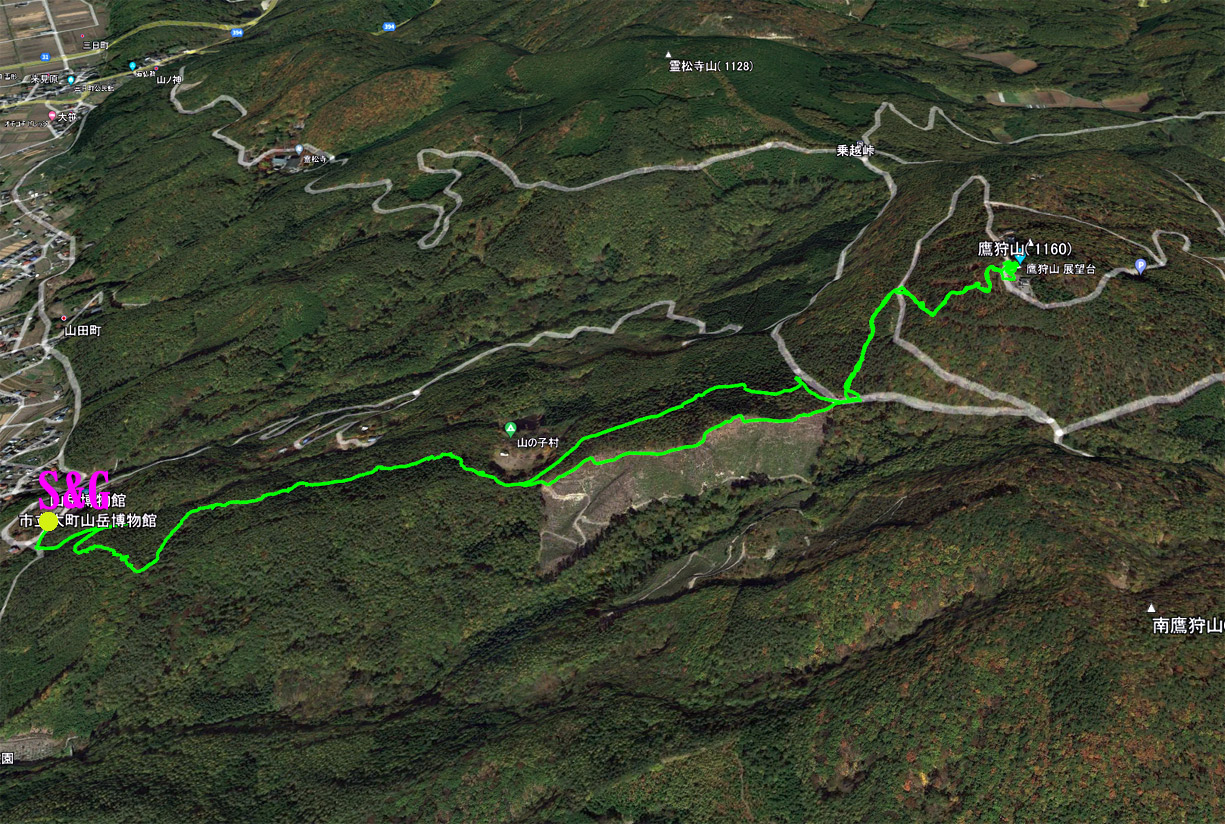 | 鷹狩山鳥瞰図 ヤマレコ⇒https://www.yamareco.com/modules/yamareco/detail-5865891.htmll |