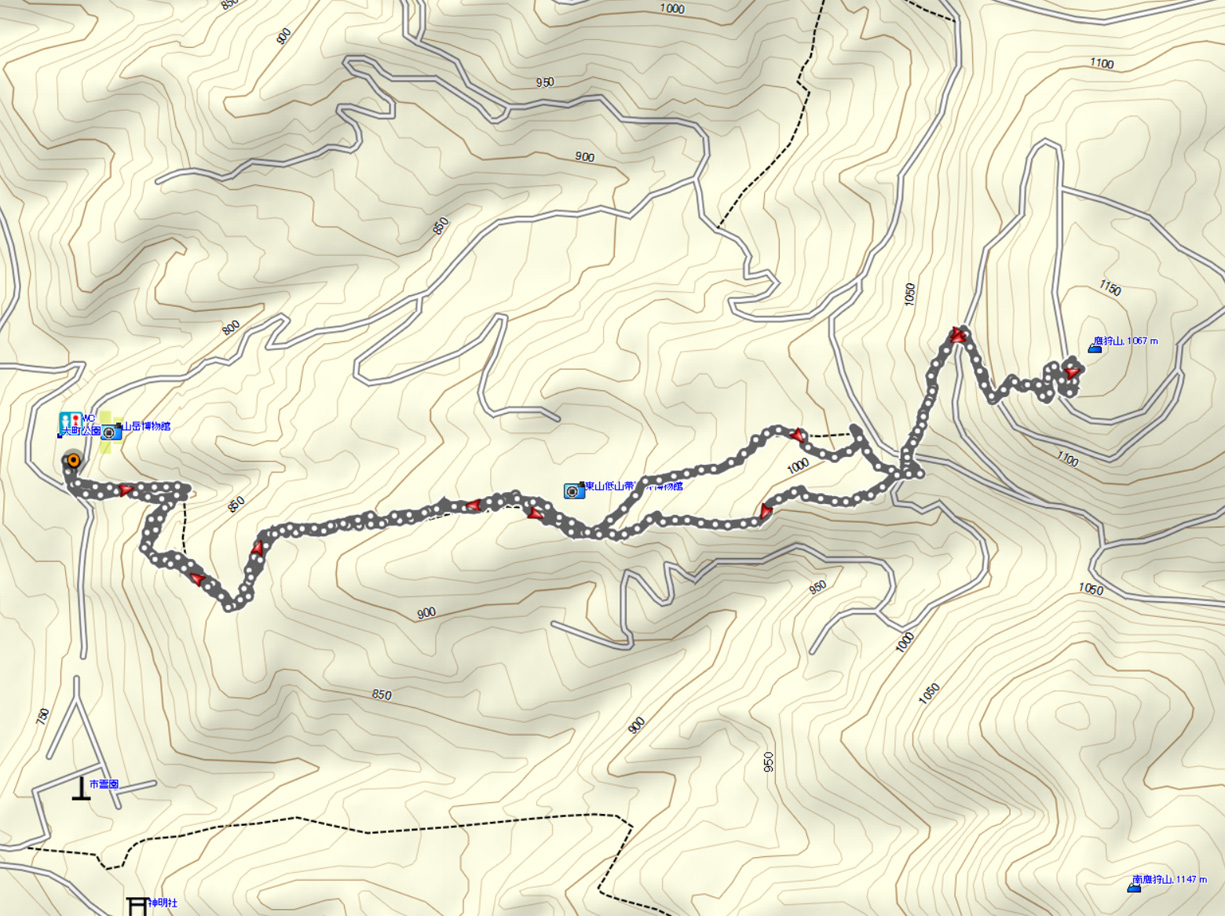 | 鷹狩山ルート地図 (計曲線 50M 主曲線 10M) |