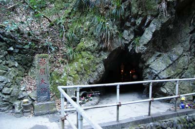琵琶滝 《写真にマウスを》 真冬でも滝に打たれる水行者の姿を見られる |