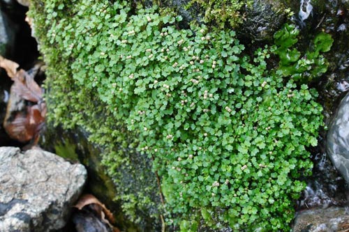 この沢沿い、あちらこちらでハナネコノメ植生を見かけたが開花時期は7日後くらいと思われる |