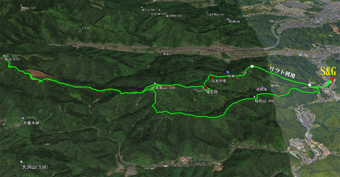 高尾山&小仏城山GPSデータ DL方法=地図画面→標高→マップ機能スクロール