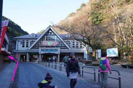 | 高尾山ケーブルカー山麓駅 ピンク矢印=稲荷山コース入り口 |