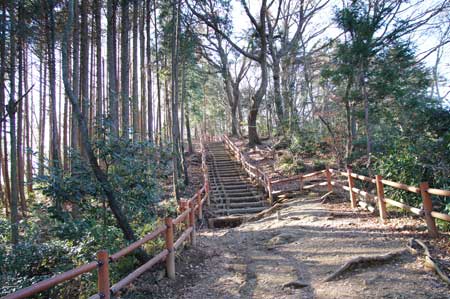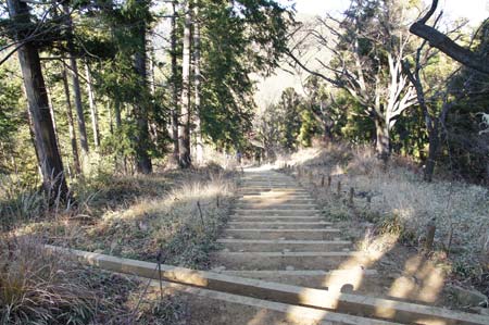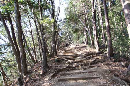 | 標高の高い場所を目指しているのに、 なぜか長〜い下り階段が・・・ 帰りの事を考えると足取りが重くなるぜよ〜!! |