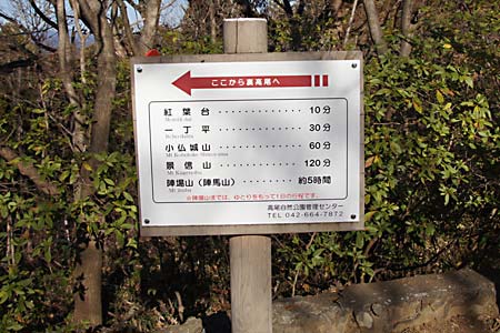 | 小仏城山マデ60分 景信山マデ120分 | 左手に富士山を眺めながらモミジ台を通過 | |||