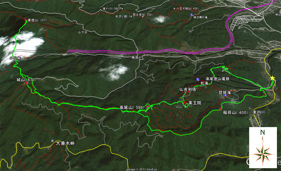 高尾山・景信山 グーグルアース鳥瞰図![]() |