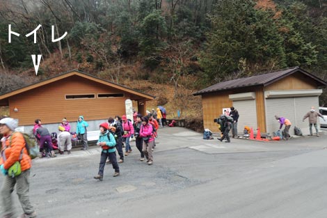 | トイレ完備 | バス停前舗装路を陣馬山方面へ向かう | |||