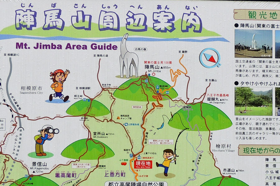 | 関東の富士見100選 陣馬山山頂(トイレあり)857M 富士山に向かっていななく白馬像 天気が良ければ富士山はじめ丹沢・奥秩父・南アルプスなど360°大展望が楽しめる |
