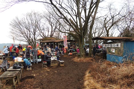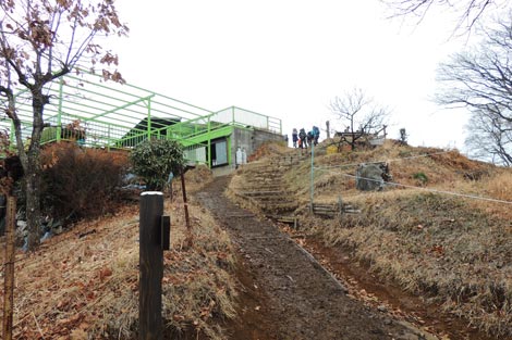 | この右斜面上が陣馬山山頂 | 山頂茶店が現れる | |||