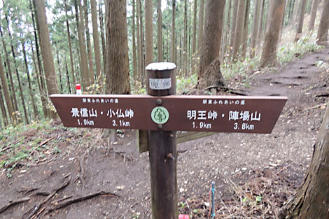 | 景信山まで残り1.9キロ | 右の巻き道の方が早いがたまには登り筋肉を使わねば・・・ | |||