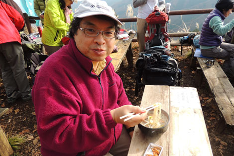 | 11:53-12:56 景信山で昼食タイム なめこうどん 寒い時期はこれが一番 (^O^)v | ||||