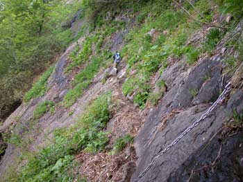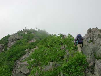 | 行程&所要時間 2001.7.8 戸隠牧場駐車場発 6:30 〜 一不動小屋 8:20(小休) 〜 五地蔵岳 9:50 〜 八丁ダルミ 11:00 〜高妻山山頂着 12:10 (昼食) 山頂発 13:00 〜 八丁ダルミ 13:30 〜 五地蔵山 14:30 〜 一不動小屋 15:09(小休) 〜 牧場駐車場着 16:30 2003.6.8 戸隠キャンプ場発 7:00 〜 水場 8:28 〜 避難小屋 8:45(大休) 〜 五地蔵山 10:00 〜 八丁ダルミ 11:00(大休) 〜 高妻山山頂着 12:15(昼食) 山頂発 13:15 〜 八丁ダルミ 13:46 〜 五地蔵山 14:32 〜 避難小屋手前で15分休憩 〜避難小屋 15:18 〜 水場 15:30(休憩) 〜 牧場入り口 16:29 〜 キャンプ場P着 16:44 コメント 03.6.8 高山植物の撮影が目的で、高妻山登山はオマケでしたが、 撮影の為、しゃがんだり立ったりの繰り返し・・・これが結構ハード! 山頂に着くも食事がとれないほど疲労困憊、挙げ句の果ては足の痙攣。 山頂にビバークか? との思いも頭をよぎりました。 (^_^;) |
