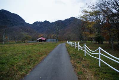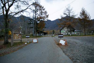 | 牧場管理事務所(登山届BOX)&第一ゲート | 赤いとんがり屋根を通過して一不動登山口へ向かう | ||||