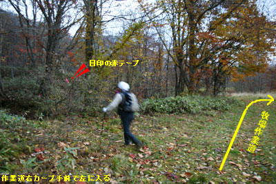| 牧場作業道を歩く | 弥勒尾根新道登山口 (2013年・夏季より登山口指導標有り) |