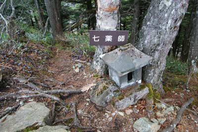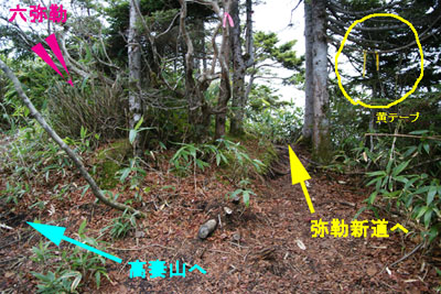 | 六弥勒(右写真)の真後ろが弥勒尾根新道下山口 一本道なのでロストの心配なく牧場まで降りられる |