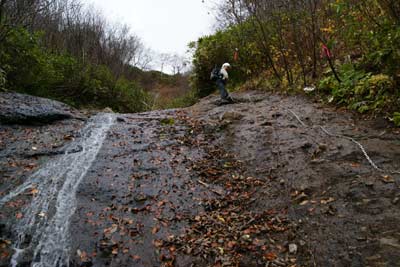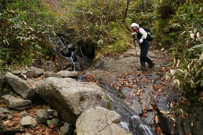 | 滑滝のクサリ場 | 大洞沢(おおほらさわ)を渡る | ||||