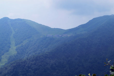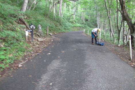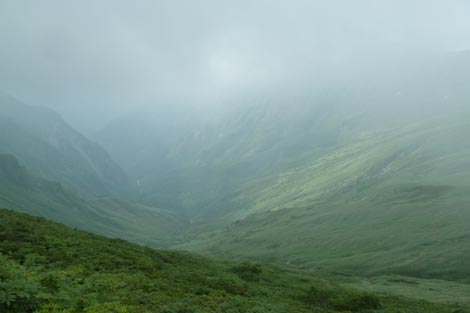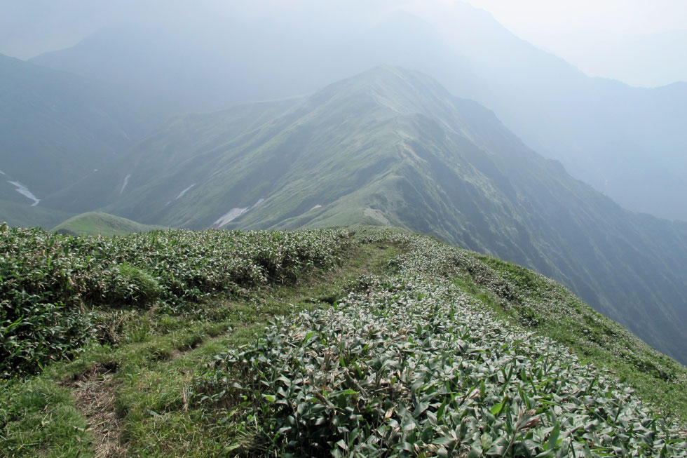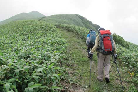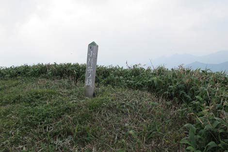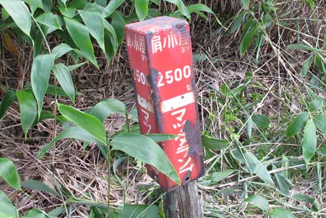 | ひたすら笹原道を歩く | 肩の小屋より 2500m マツダランプに付いては上段解説参照 |