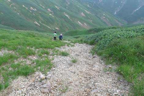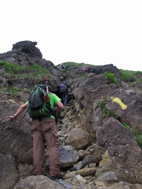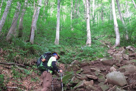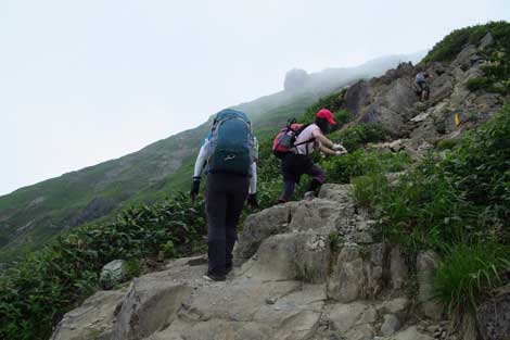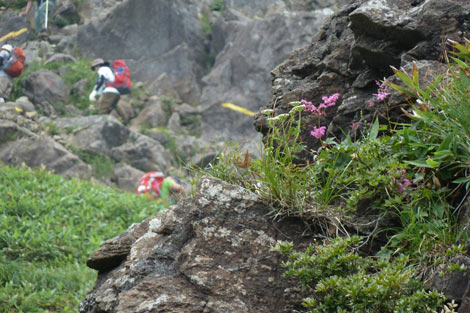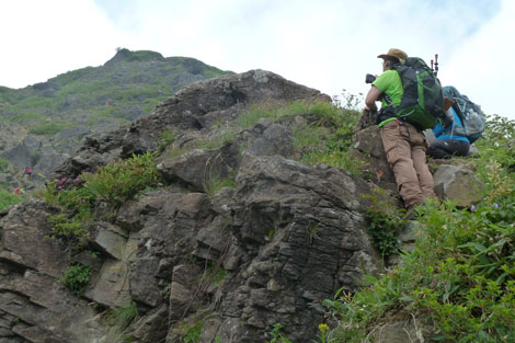 | ガレ場(ゴーロ道) | 花撮影で余裕のabeちゃん 爺は足を前に出すのが精一杯だった (ノД`) |
