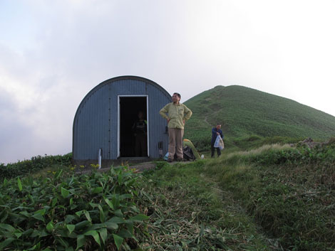 | 前方の小ピークを越えれば避難小屋が見えるハズ | 見えた〜♪ | |||