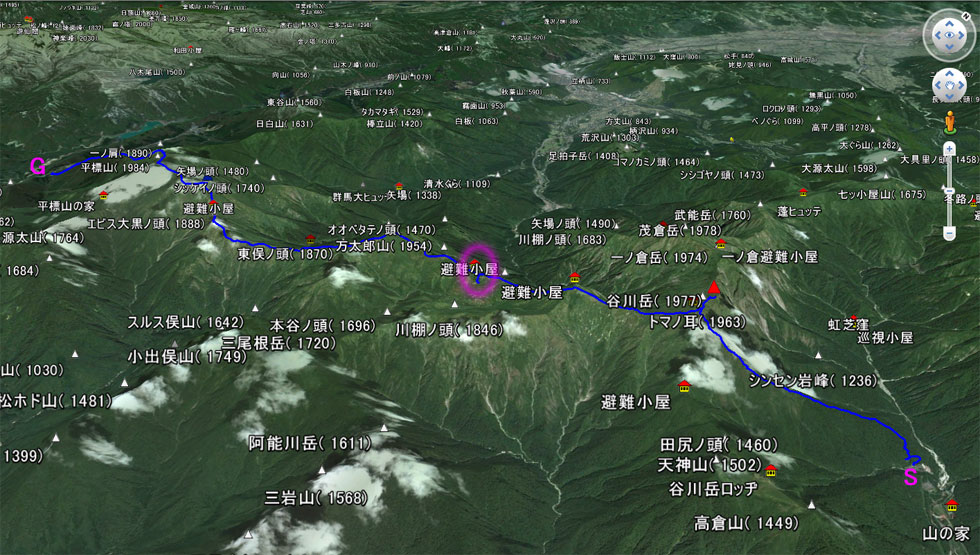谷川連峰主脈縦走路鳥瞰図![]() |