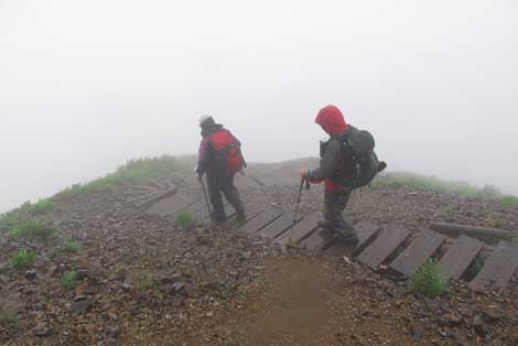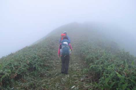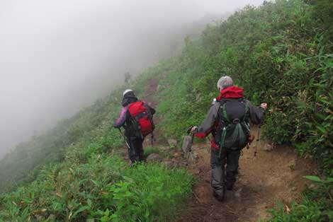 | 先ずは越路避難小屋を目指す | 平標山ノ家を3時に出発した若者と情報交換 爺はソックスを絞って!絞って!もう大変 (笑) |
