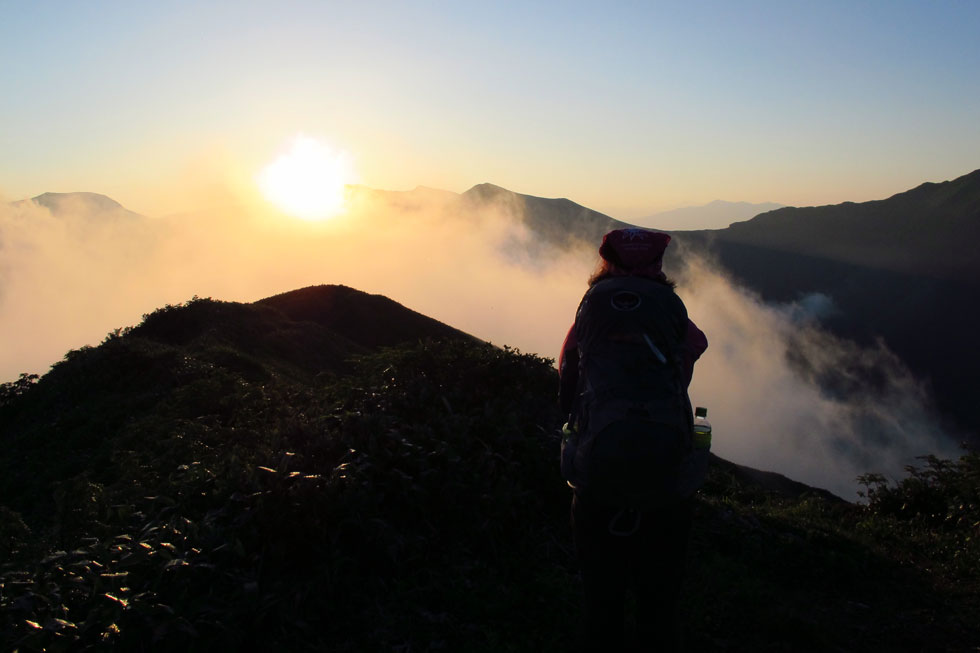 | AM 5:07 朝陽を迎えるabeちゃん・大障子ノ頭より | ||||