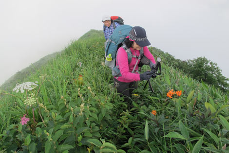| ジョウシュウキオンとカラマツソウ | フラワーロードでクルマユリ撮影中 | |||