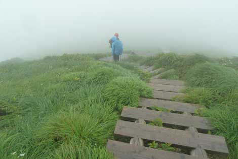 | 高山植物群生地は木道で保護されている | PM 13:04−17 松手山 1614M | |||