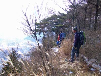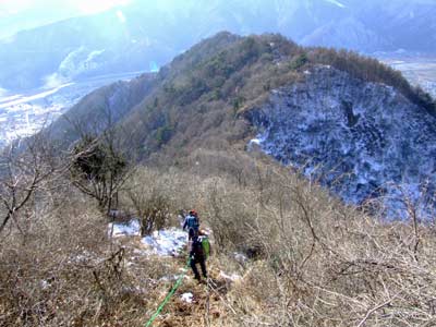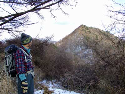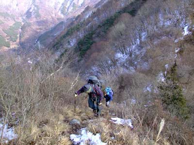 | 西側の尾根へ進む/上記拡大図参照 北斜面側に要注意箇所あり |