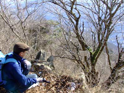 | ルート上の茨が刈り払われており歩きやすい | 岩稜部で大峰山をバックに |
