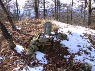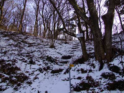| 陣馬鳥越山(760m)と高津屋山(920.9m)の鞍部 | 虚空蔵山登山口 木段の上が左写真の鞍部地点 |
