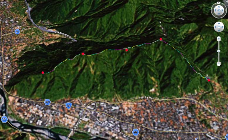 | ↑ 上のグーグルアースをクリックすると全行程の地図(517KB)が表示されます。 |