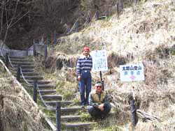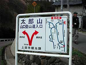太郎山の史記を書いた看板を読みながらの
