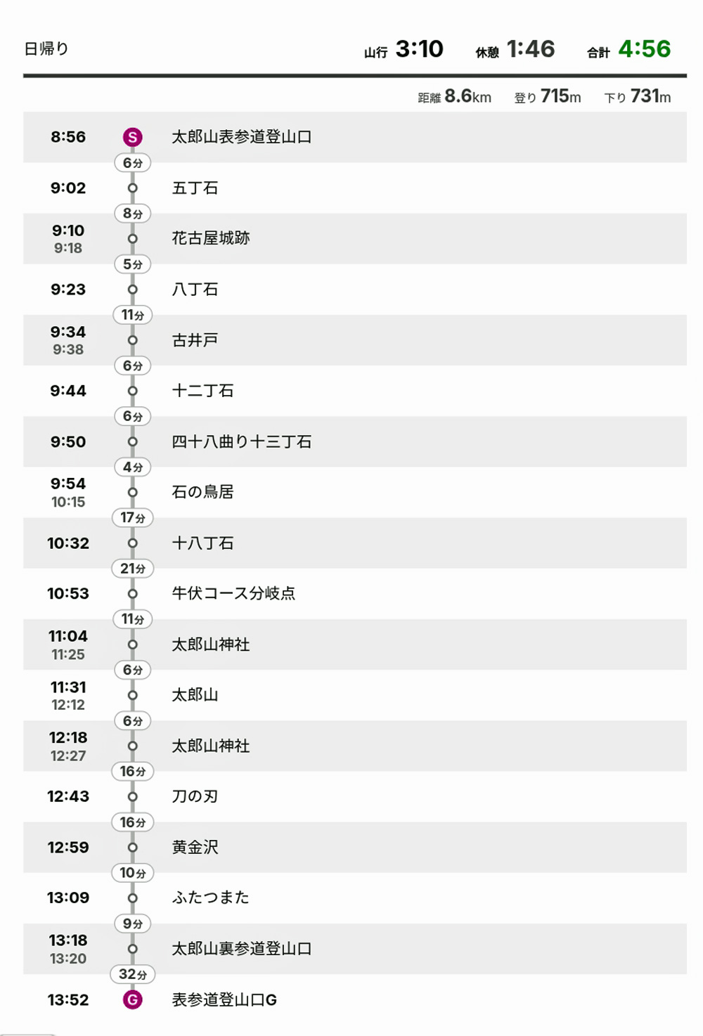 | 《上田太郎山コースタイム他》 写真撮影時間20分〜100分含む |