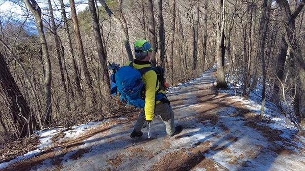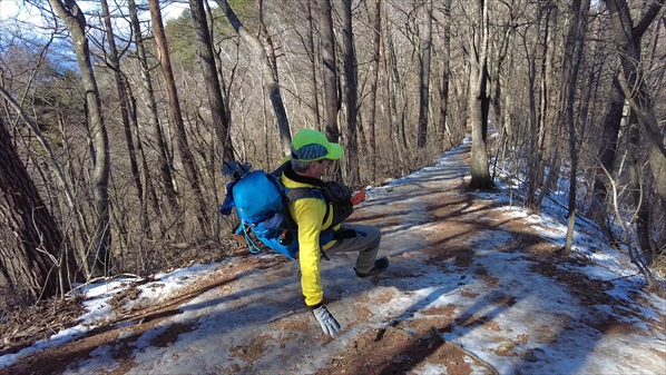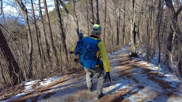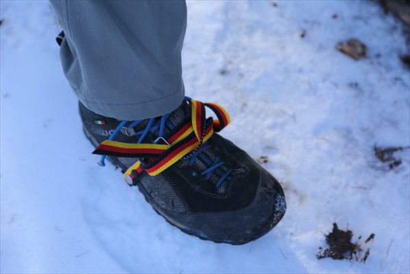 | この程度の積雪でアイゼンを使う事はないのだが転倒の前科があるので念のため・・・ | ||||