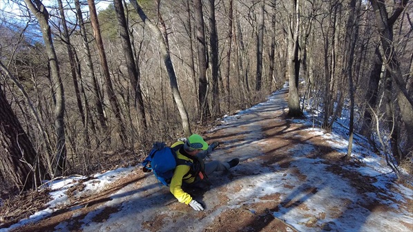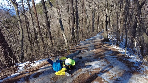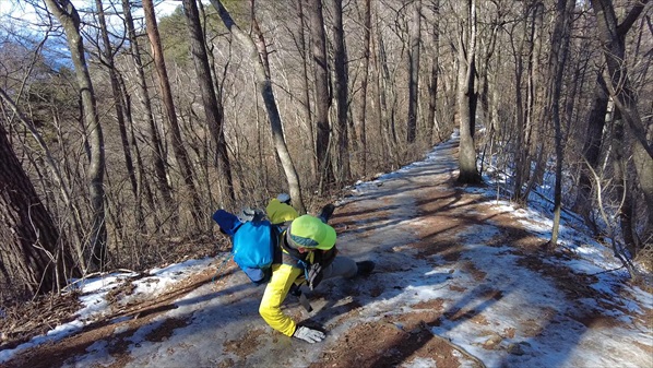 | 太郎山神社から山頂への鞍部でスッテンコロリの爺 | ||||