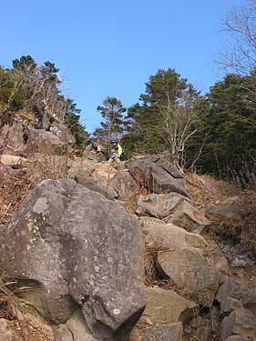溶岩岩塊の中を直登A/背後は前掛山 |
