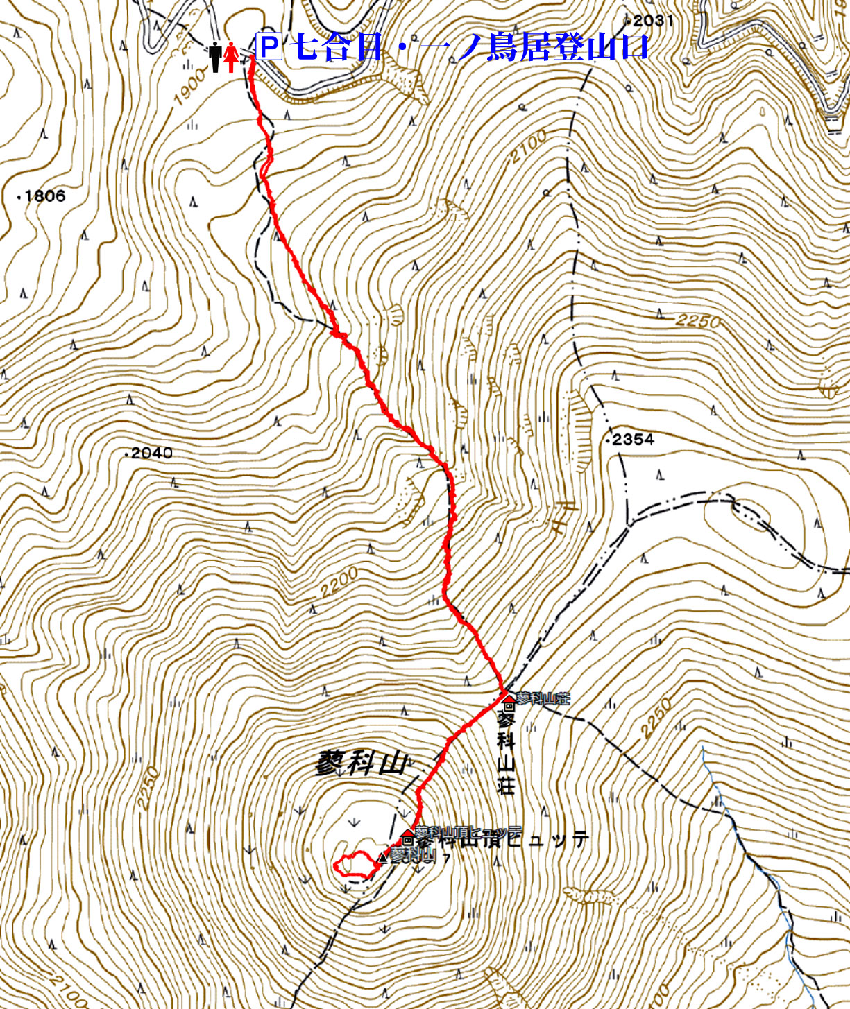 | 蓼科山ルート地図 (計曲線 50M 主曲線 10M) |