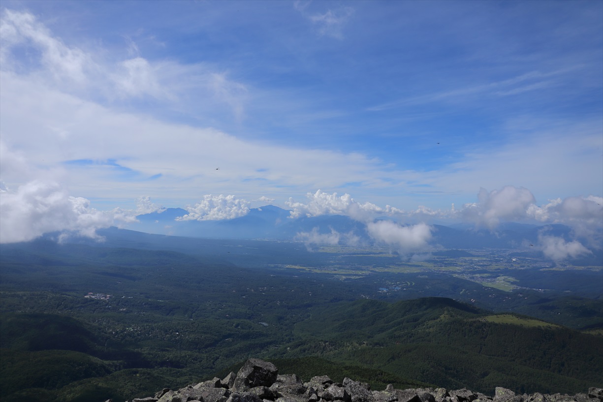 | 左側の赤岳方面や正面の南アルプス方面は雲の中でした(ノД`) | ||||