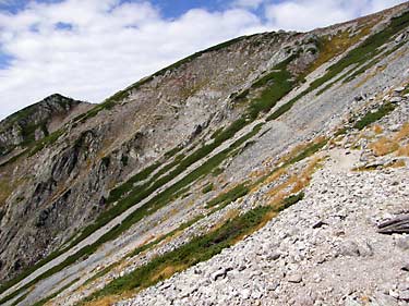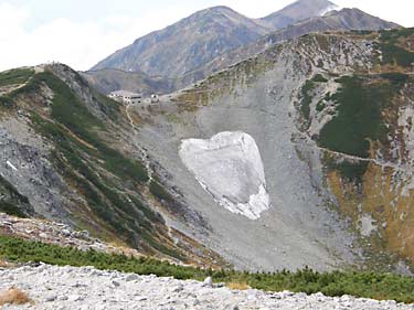 剱御前小舎(トイレ有)前のベンチでひと休みしたら雷鳥坂と呼ばれる急斜面を下るが、