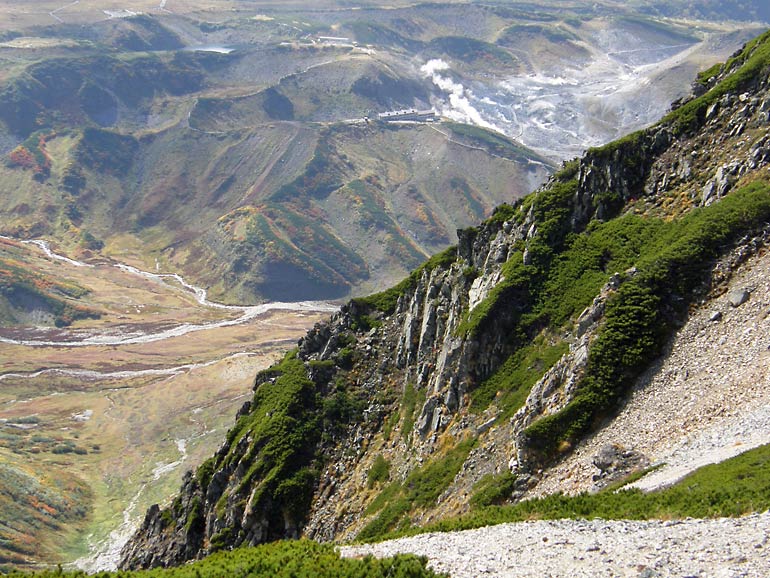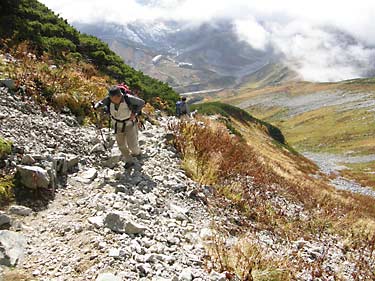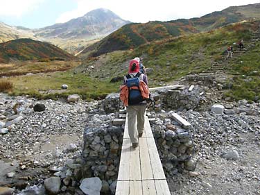 雷鳥沢キャンプ場からは観光客が多い遊歩道を約1時間かけてターミナルまで登り込む。mikio