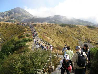 (凸凹が多く歩きにくい)が整備されているので登山者に混じって観光客も多い。
