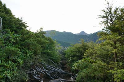 約二時間の樹林帯歩きにウンザリしたころ一気に展望が開ける |