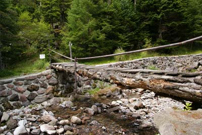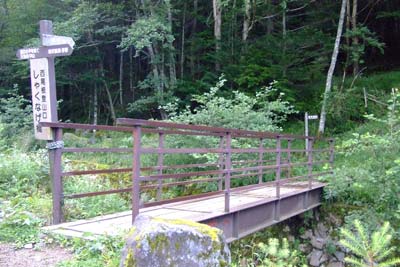 木橋を渡れば唐沢鉱泉が近い |