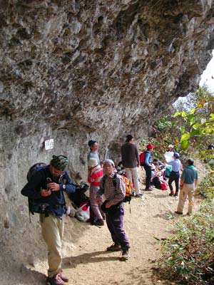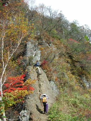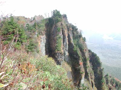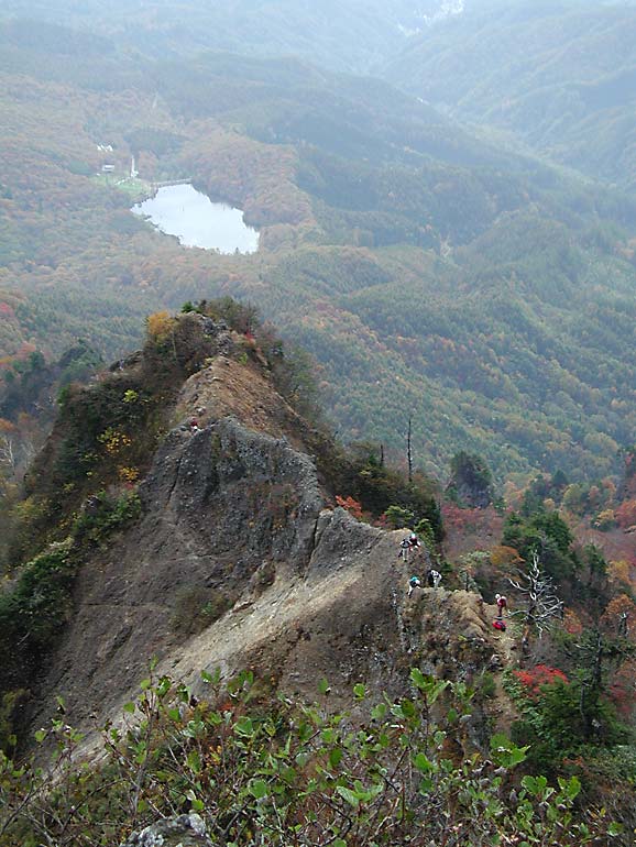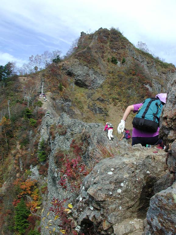 | 断崖絶壁(ナイフブリッジ)の蟻の塔渡は、話に聞いていましたがスゴ〜イの一言です。 岩を股に挟んだまま身動きが取れなくなった人・人・人・・・(気持ちが分かります。) 八方睨には、70歳前後のご夫婦もいて熟年?パワー恐るべし! 車2台で行き、下山場所の牧場駐車場に車を置いて帰りは楽をする予定が・・・ 肝心のキーを登山口に置いた車中に置き忘れる大チョンボ! 結局バスに乗り、車を取りに行って来ました。 トホホ |