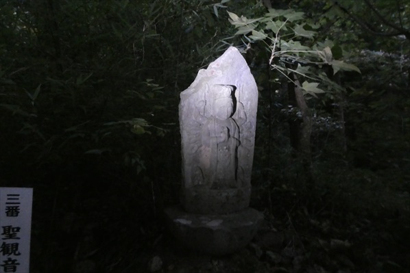 | AM5:20 コースタイムに表示の「かるかや堂往生寺入口」には丁石もある | ||||